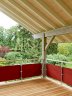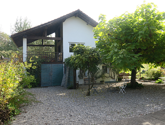 La dépendance est conservée dans sa forme actuelle sans altérations de son identité et de sa volumétrie. Ses deux parties distinctes, l'une en bois, l'autre en maçonnerie sont reprises et développées par le projet. La partie en bois, au nord, accueille des espaces servants marquant l'entrée dans l'atelier et dotés de grands volumes d'armoires. Quant à la partie maçonnée, au sud, elle abrite deux grandes pièces dégagées et une mezzanine, le tout relié par un nouvel escalier intérieur à quart tournant. Cuisinette et salle d'eau apportent un brin de confort. De nouvelles ouvertures réorientent le bâtiment vers le jardin et un splendide pâturage sur une colline. L'enveloppe du bâtiment a été entièrement isolée permettant de tempérer les locaux. Une grande terrasse ouverte sous toiture est conservée.